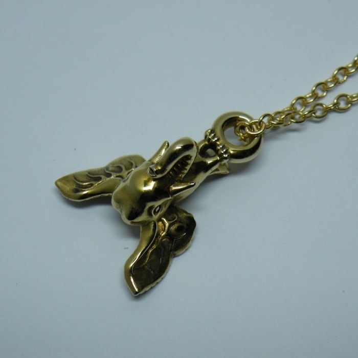 象の頭部に鳥の体がついた、ユニークなデザインの象面鳥チャームです。細部までしっかりと作り込まれたデザインは、見る人をほっこりとさせる魅力があります。