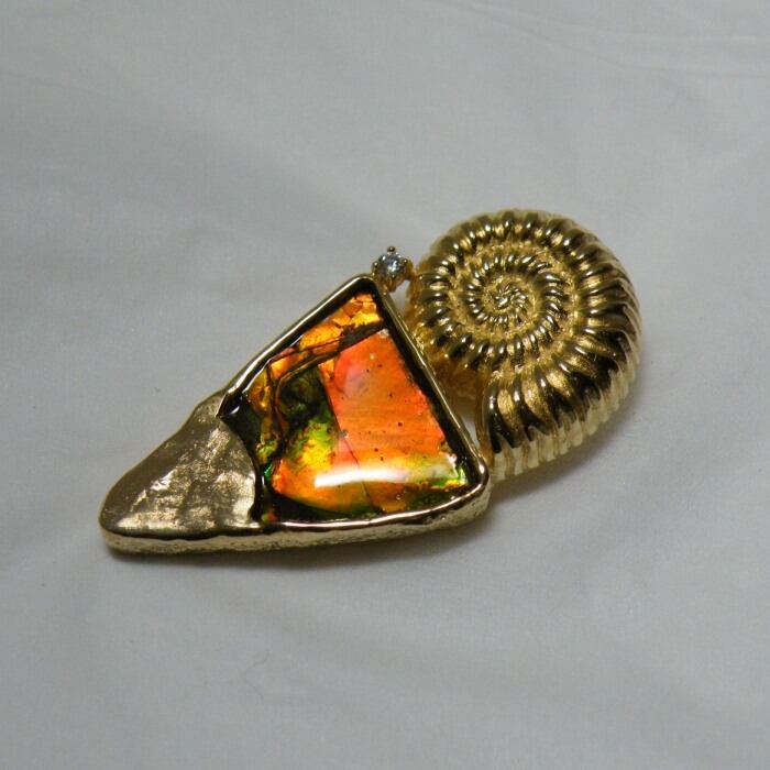 自然界で1億年以上もの歳月を経て作り上げられた美しいアンモライト。その美しさをペンダントに閉じ込めました。